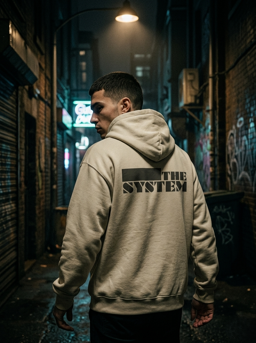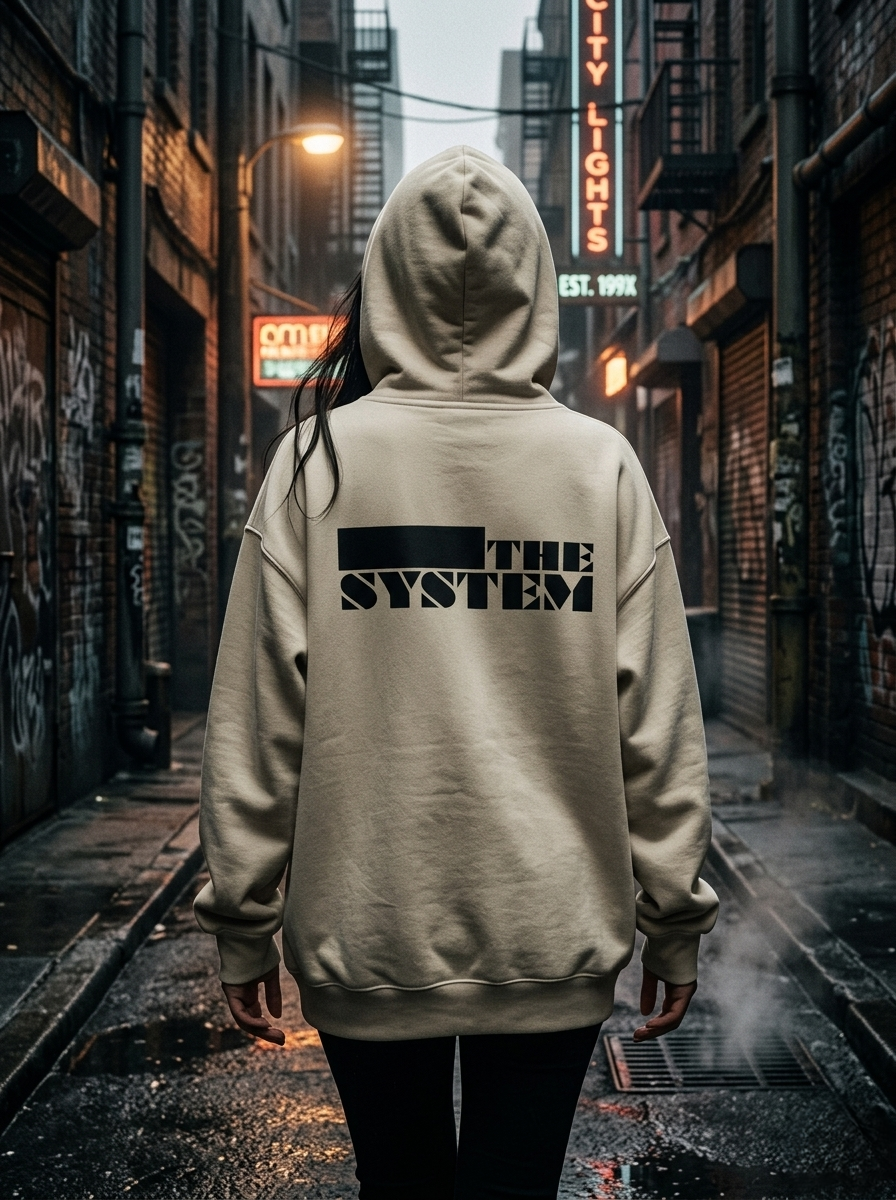 Hoodie met statement ‘[REDACTED] THE SYSTEM’. Unisex pasvorm. Minimalistisch ontwerp met een krachtige, gecensureerde boodschap. Gemaakt om te dragen, bedoeld om vragen op te roepen. Voor wie ziet hoe het spel gespeeld wordt en weigert mee te doen. Gedurfd. Stil. Onmiskenbaar.